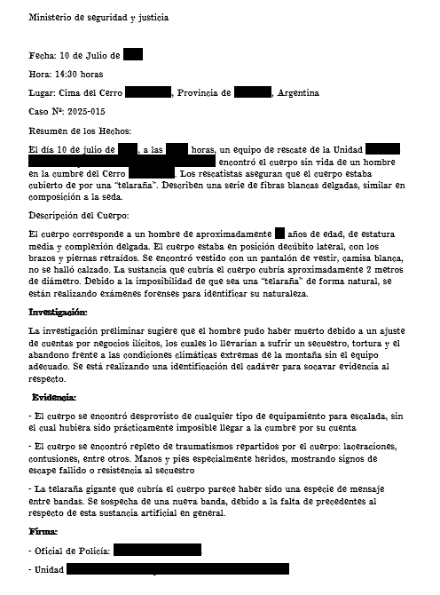 Apoya los pies. Prácticamente no siente la piedra, ya que el frío entumeció por completo sus falanges. Tensa los músculos del tarso con la esperanza de que el flujo de sangre evite la necrosis por congelamiento. Algo había leído sobre eso, pero tampoco tiene idea. Así como tampoco tiene mucha idea sobre montañas, o sobre escalada, o sobre sí mismo en general. En ocasiones, ha llegado a reconocer no conocer los verdaderos motivos de nada de lo que está pasando en su vida. Él no sabe por qué eligió ese camino, él no sabe por qué se metió a esa empresa, él nunca se preguntó cómo afecta su trabajo en el mundo, él jamás se imaginó cómo le afectaba su vida a sí mismo.