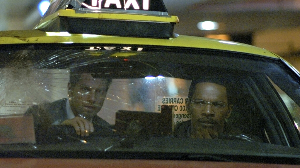 La sangre fluye desde el abdomen superior, a la altura de la vesícula. Una herida de bala hace imposible detener el drenaje de una bilis desbocada. Vincent (Tom Cruise) se sienta en el tercer asiento de una fila de tres y en ningún momento observamos en el una sensación dolorosa de epigastrio. Traje gris, camisa blanca, el pulso aparenta normal pero la presión arterial comienza a subir. La tumefacción parece desbordar los límites que lo mantienen en pie y en la oreja izquierda también hay sangre. Recibió tres disparos amateurs de un taxista llamado Max (Jamie Foxx) y la herida en la parte posterior de la cervical parece haber venido de atrás. Lo cierto es que estuvieron juntos frente a frente toda la noche; no sólo en la escena final del tren cuando Max acabó con la vida del asesino, sino a lo largo de la jornada, cuando Vincent decidió mostrarle que la diferencia entre un hombre que trabaja de matar a desconocidos y otro que se gana la vida como taxista postergando sus sueños de empresario, sólo pende de pequeños umbrales de decisión. El tren va de este a oeste. La ciudad esta calurosa y el director de la película, Michael Mann, se esfuerza en mostrar cómo los trenes nocturnos de Los Angeles siempre cargan con el peso de los tipos solitarios. Así lo había hecho antes con Heat, cuando decide mostrarnos a Neil (Robert De Niro) saliendo del metro que lo deja en el first building de la estación de bomberos. Así es como lo hará diez años después con Collateral, cuando ponga frente a frente a dos hombres que parecen iguales a otros pero en verdad son muy meticulosos.