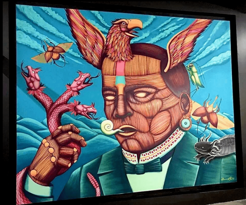 UN LOBO CON ROPA DE OVEJA Y CON EL CORAZÓN DE UN CORDERO QUE SOSTIENE UNA BOMBA