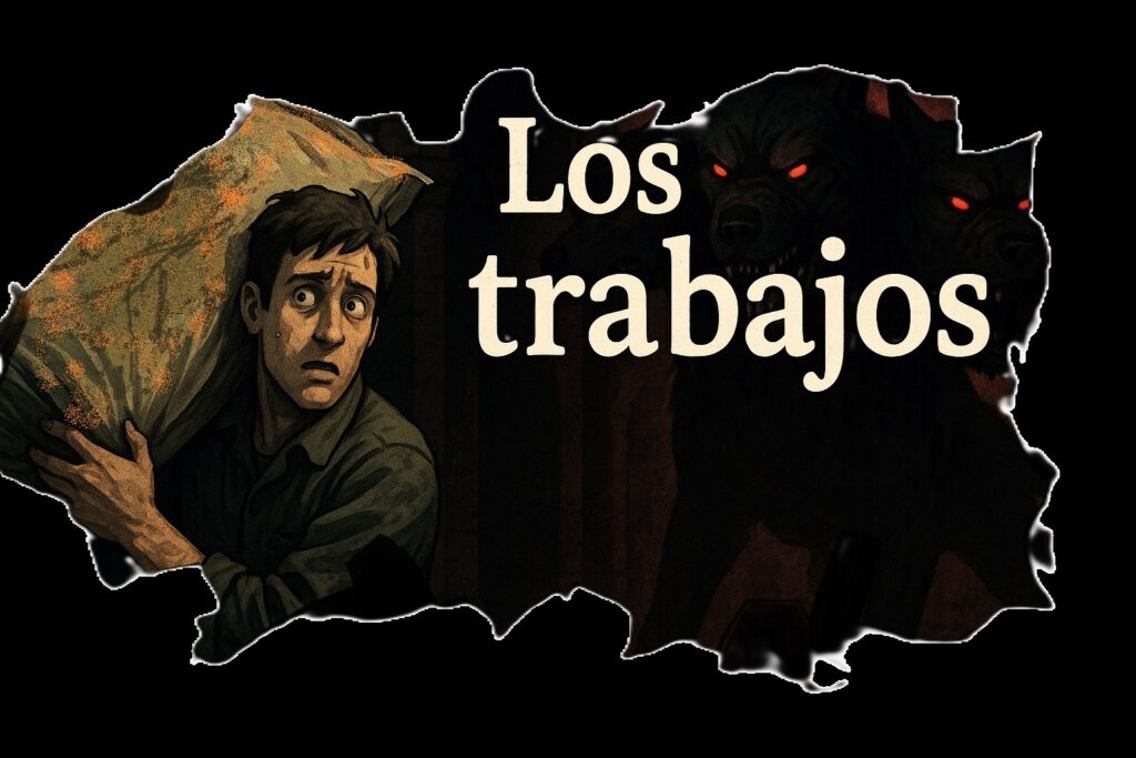 Allá abajo algo se mueve: algo enorme; parece un animal del tamaño de un toro, pero algo no se siente normal. Observo con atención: un perro enorme con tres cabezas y cola de serpiente surge de las sombras y se abalanza sobre la bolsa de comida que arrojé; en un segundo bolsa y perro monstruoso desaparecen de nuevo en el fondo oscuro del foso. Pero entonces, esto es…